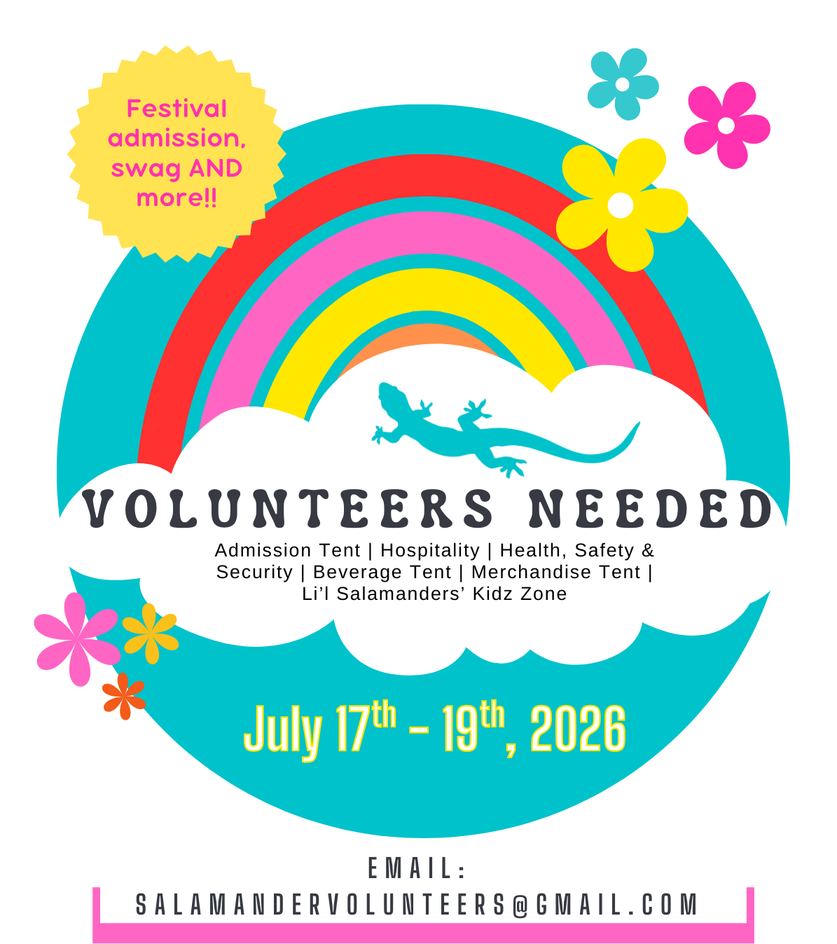 Events like Salamander Summer Music Festival run on the power of volunteers! And there are lots of great perks like free admission to the festival and tons of swag!